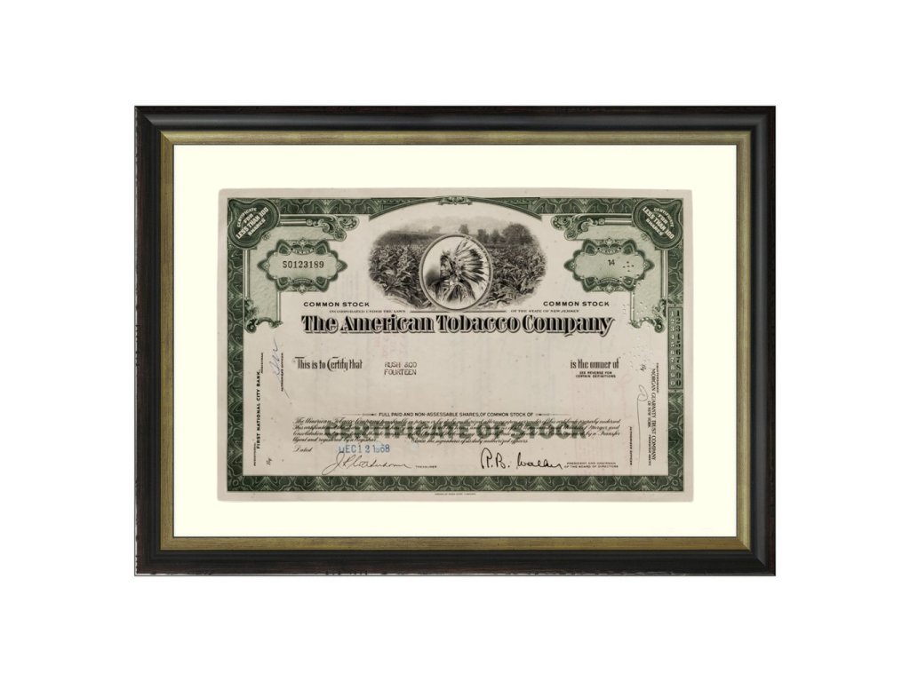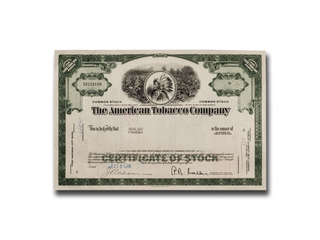 Historický akciový certifikát – The American Tobacco Company
