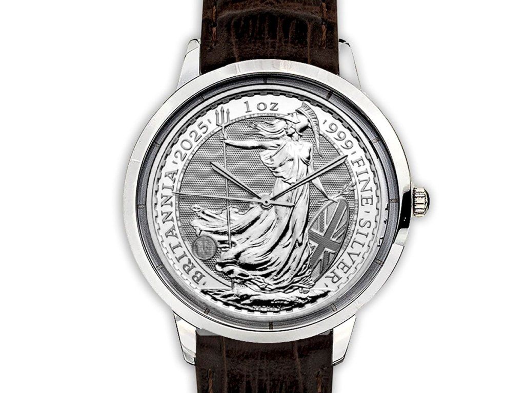 Luxusní hodinky Silver Britannia kombinují nadčasový design s hodnotou drahého kovu. Dominantou je 1 oz ryzího stříbra (.999), které je zasazeno do pouzdra hodinek a vytváří jedinečný vizuální efekt.