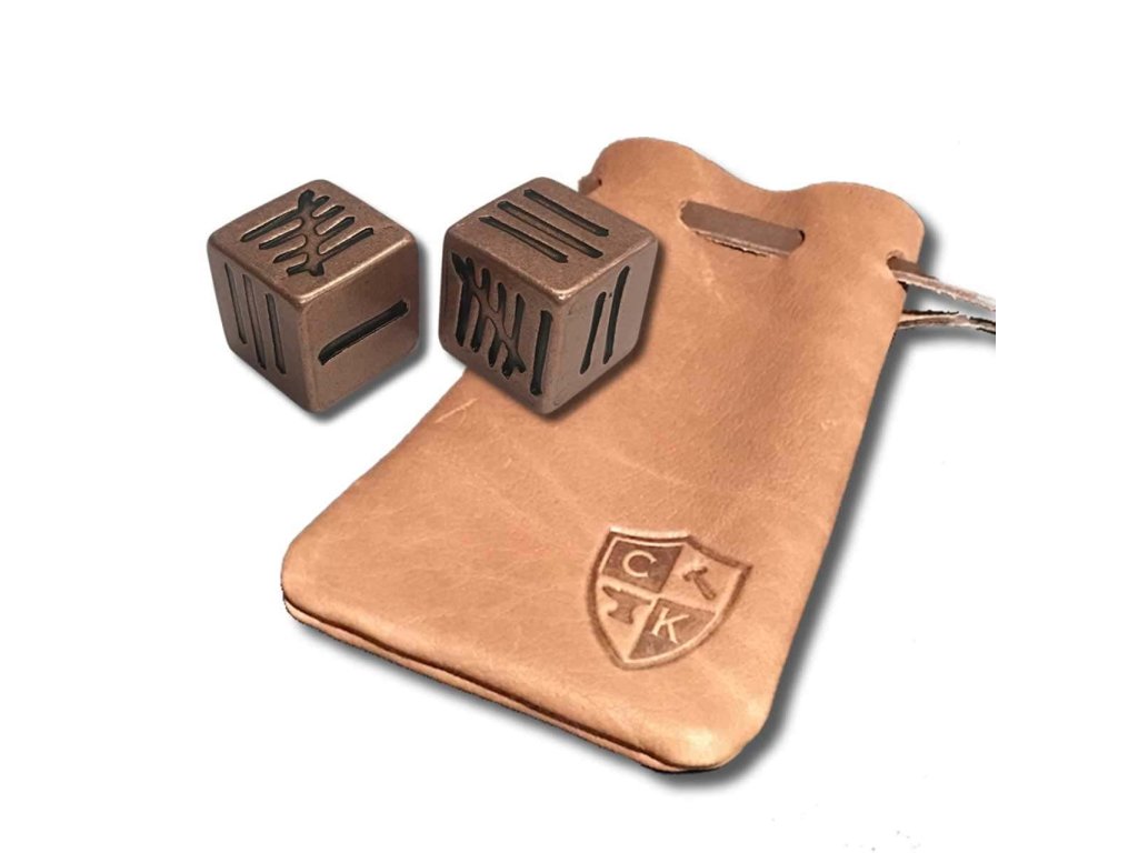 Měděné hrací kostky čárkované 2.4 oz AVDP + sáček z hovězí kůže Copper Gaming Dice in Real Leather Bag