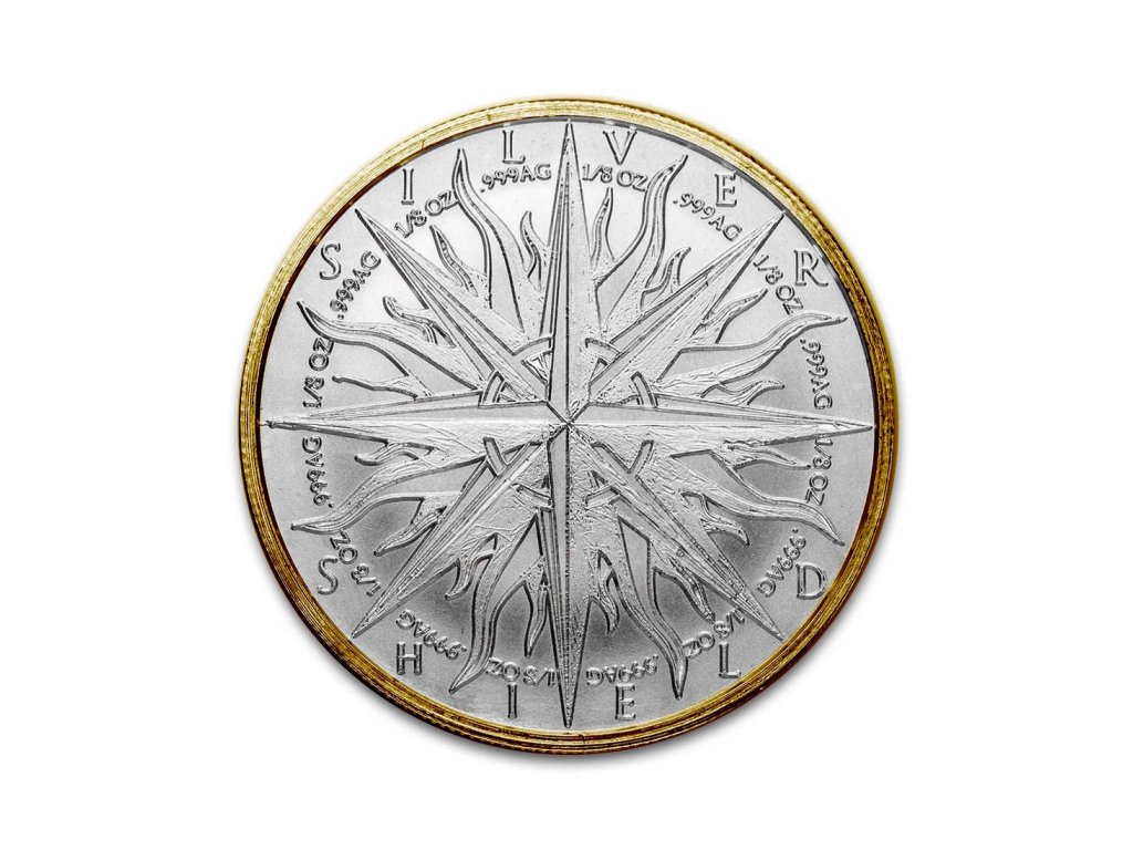 1 oz 2016 Silver Shield Round - Pieces of Eight Tato neuvěřitelná jednouncová stříbrná medaile je inspirována světem pirátství a představuje unikátní kombinaci symboliky a kvality. Na lícní straně je vyobrazen pirát spolu s nápisem „Praedatum in Mundo“, což lze přeložit jako „Predátorský svět“. Tento motiv odkazuje na drsnou realitu a dobrodružství námořního světa pirátů. Na rubové straně je zobrazena ryzost a hmotnost osmi dílčích 1/8 oz segmentů, ze kterých se skládá celá 1 oz stříbrná medaile. Jedná se o netradiční, ale velmi efektní provedení, které z medaile činí sběratelský unikát. Specifikace: