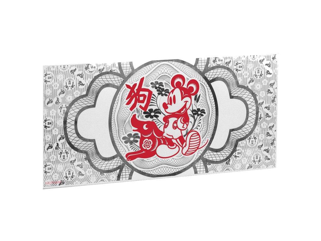 Tato krásná stříbrná bankovka je první emisí v nové sérii „Disney Lunar Foil Collection“ a oslavuje Rok Psa s oblíbenou Disney postavičkou Mickey Mouse.