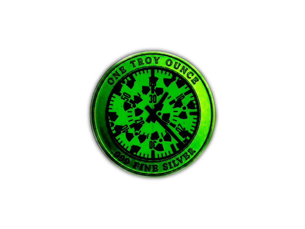 Medaile je doplněna o výrazný Space Green efekt, který dodává motivu surový, futuristický vzhled a zdůrazňuje téma kontaminace a energie.