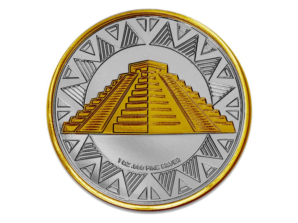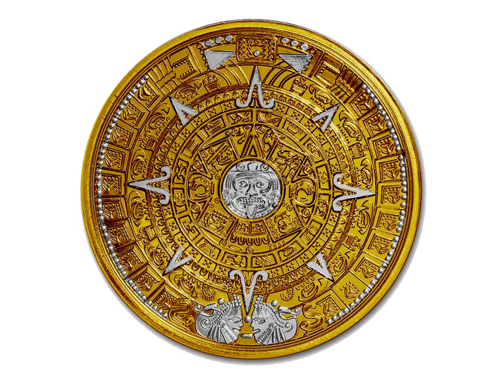 1 oz Stříbrná mince – Aztécký kalendář - Zlaceno 24k zlatem