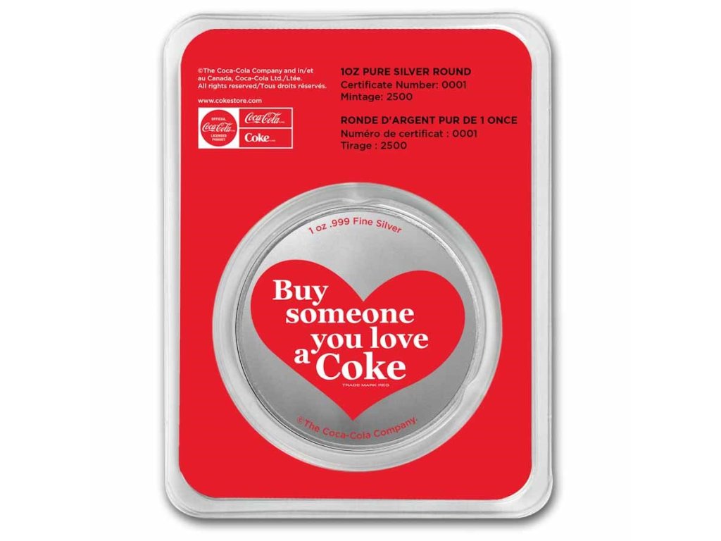 Stříbrná medaile 1 oz - Coca Cola - Valentýn