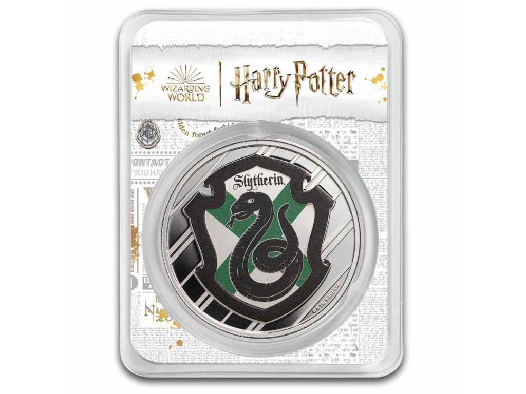 Tato kolorovaná stříbrná medaile je dodávána v licencovaném obalu s ochranou proti neoprávněné manipulaci (TEP). Ražba je pouze 5 000 kusů s motivem zakladatele koleje Salazara Zmijozela.