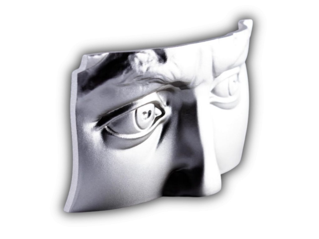 Davidova maska – 2 oz Stříbrná 3D medaile Michelangelova Davida