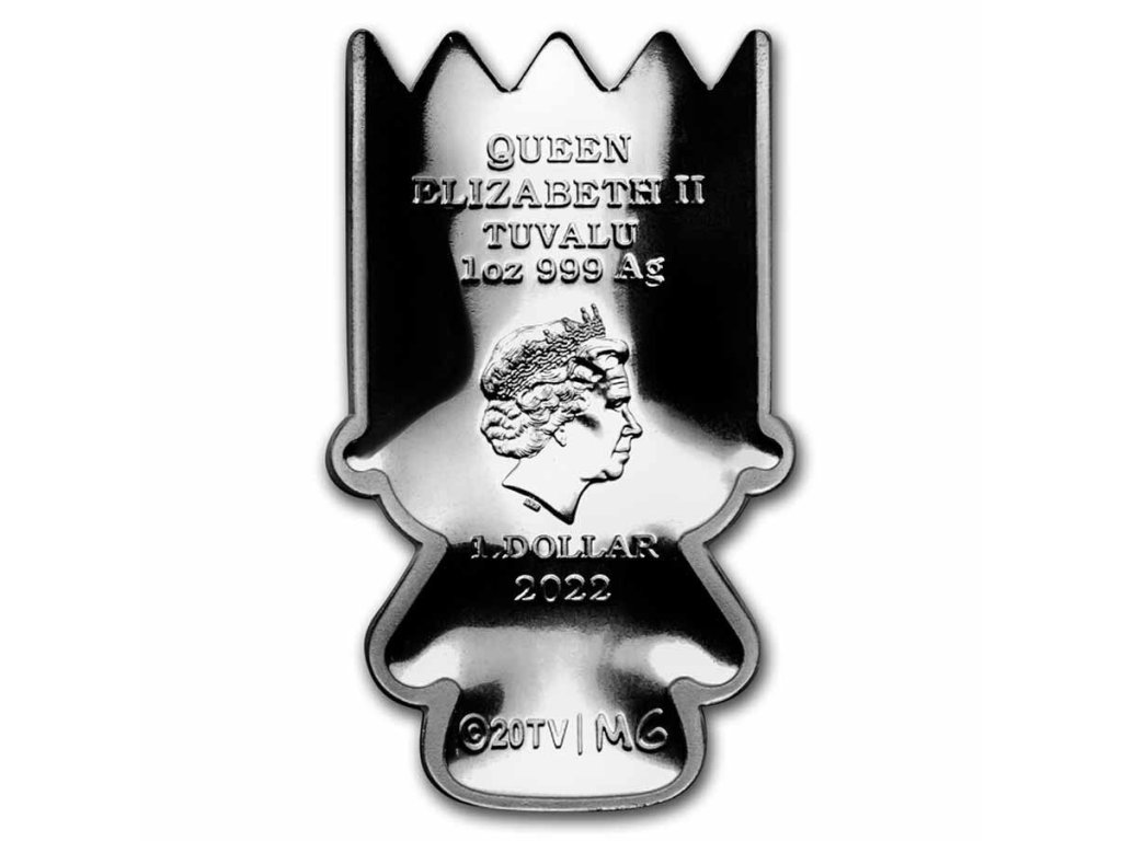 Simpsonovi měli premiéru jako půlhodinový seriál v roce 1989 a okamžitě se stali celosvětovým popkulturním fenoménem, který byl nyní k vidění ve 200 zemích ve 27 jazycích. Obsahuje 1 oz .9999 jemného stříbra. Ražba pouze 2 500 mincí. Každá mince je prezentována v průhledném akrylovém pouzdře, které umožňuje zobrazení obou stran mince, a je zabalena v dárkové krabičce. K minci je přiložen očíslovaný certifikát pravosti. Líc: Podobizna Jejího Veličenstva královny Alžběty II. Iana Rank-Broadleyho, datum roku 2022, váha a ryzost a měnová nominální hodnota jsou zobrazeny na líci mince. Rub: Reverz mince ve tvaru znaku zobrazuje stylizované znázornění Barta Simpsona v barvě. Raženo v Austrálii mincovnou Perth. Simpsonovi dosáhli neuvěřitelného milníku a stali se nejdéle běžícím pořadem v hlavním vysílacím čase v historii televize. Materiál - StříbroDruh - MinceProvedení - ProofBližší specifikace - KolorovanáVýrobce - Perth MintBalení - KrabičkaCertifikát - AnoEmise - 2 500 ksDoplňkové parametry