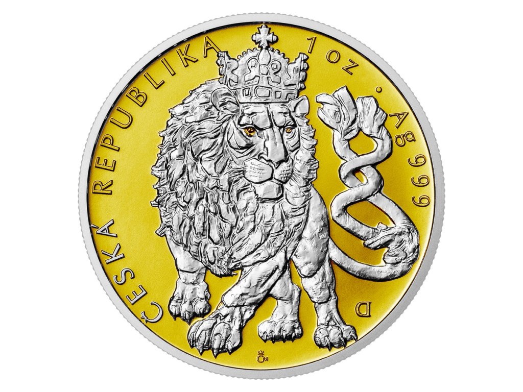 Český lev 2026 – 1 oz stříbrná mince ručně zlacená 24k zlatem