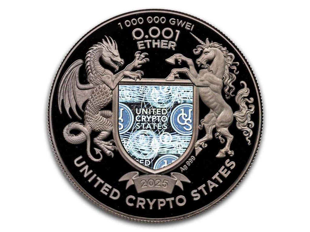 Stříbrná mince 1 oz Ethereum United Crypto States 2025 PROOF HOLO 1 Satoshi Ruthenium