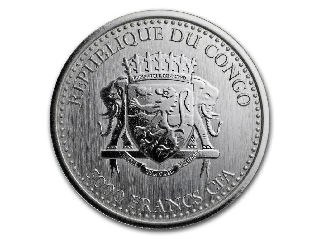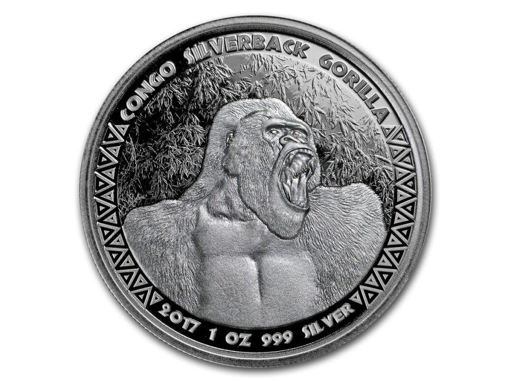 Stříbrná mince Silverback Gorilla 1 oz 2021 – Republiky Kongo (7. vydání série) Toto je sedmé vydání prestižní série Silverback Gorilla, ražené renomovanou mincovnou Scottsdale Mint pro Republiku Kongo. Každá mince obsahuje 1 unci ryzího stříbra (.999) a je dodávána v ochranné plastové kapsli. Série Silverback Gorilla je sběrateli i investory vysoce ceněná pro své limitované emise a každoročně obměňovaný motiv gorily. Vydání roku 2021 přináší polygonální ztvárnění gorily, které patří k dosud nejodvážnějším a nejmodernějším designům této série. Specifikace: