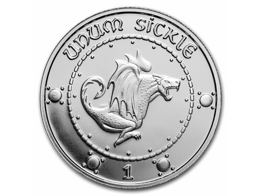 - Rub: Drak v letu s nápisem “Unum Sickle” a číslicí „1“