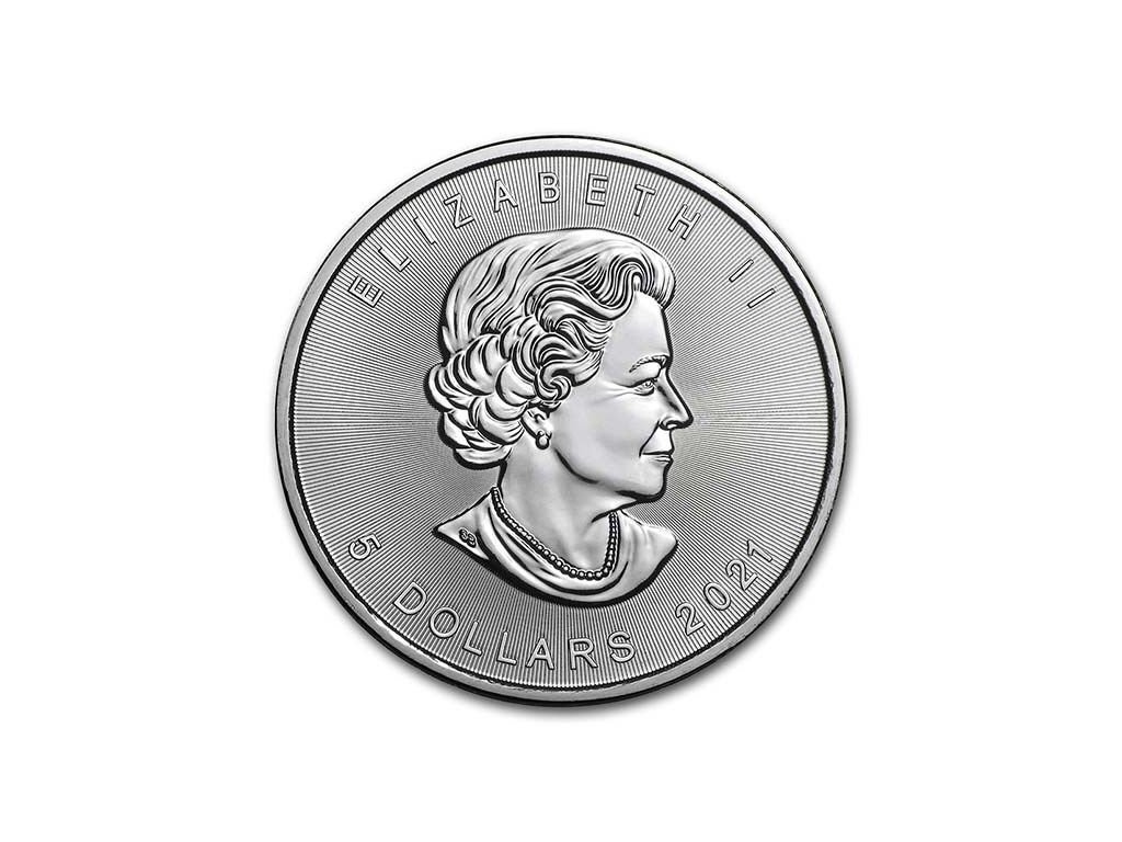 | Stříbrná mince Maple Leaf Každá stříbrná mince Maple Leaf obsahuje povrchovou ochranu MINTSHIELD™, jedinou ověřenou techniku na světě pro výrazné snížení výskytu bílých skvrn nebo "mléčných skvrn" na stříbrných mincích. Obsahuje 1 unci čistého stříbra 0,9999. Rub: Zobrazí zvětšený javorový list s hmotností a čistotou. Líc: Představuje pravý profil královny Alžběty II., rok a nominální hodnotu. Specifikace: