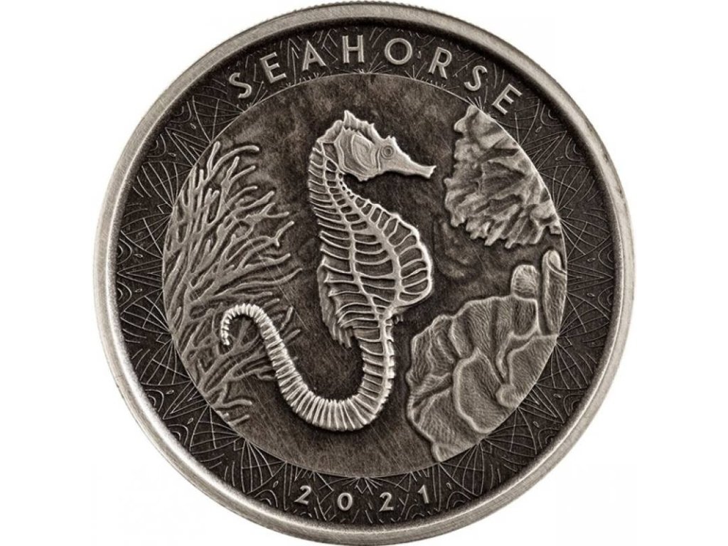 Stříbrná mince 1 oz - Mořský koník 2021 Antique finish Mořský koník 2021 Antique finish
