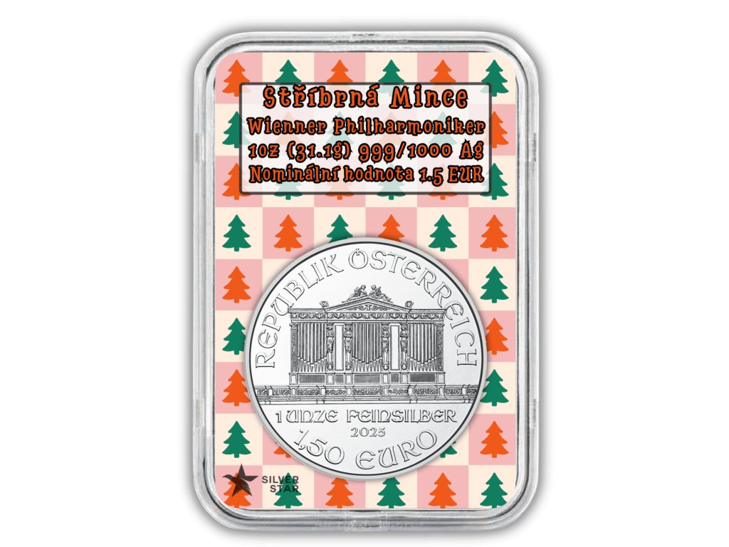 Tato speciální edice jedné z nejznámějších evropských investičních mincí Vídeňští filharmonikové přináší Vánoční a novoroční tématické zpracování, díky kterému je ideální jako dárek i jako elegantní přírůstek do sbírky. Mince je ražena z 1 troyské unce čistého stříbra a vyznačuje se vysokou precizností zpracování, pro kterou je Münze Österreich celosvětově ceněna.