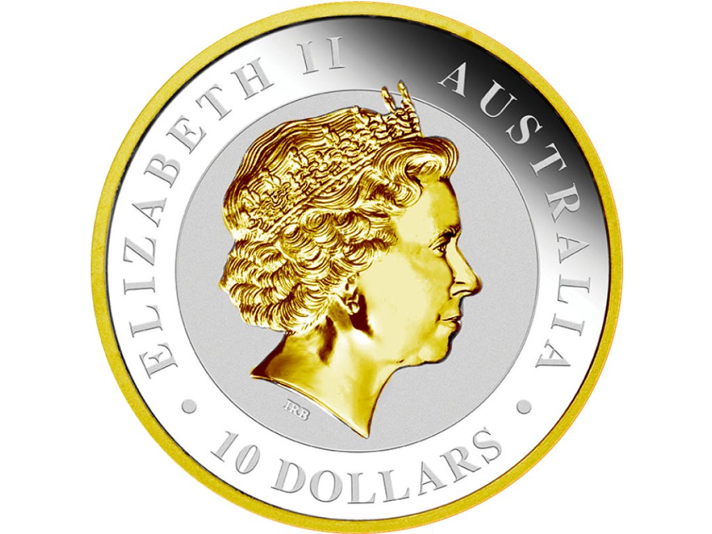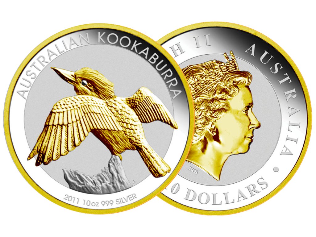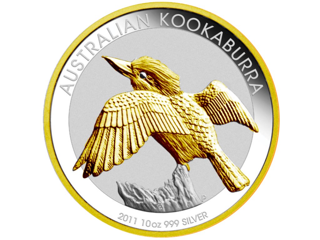 Stříbrná mince 10 oz Kookaburra zlacená 2011 Stříbrná mince 10 oz Kookaburra 2011