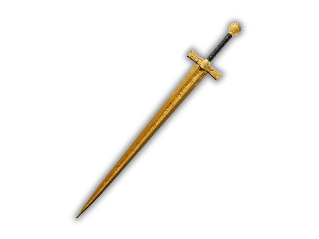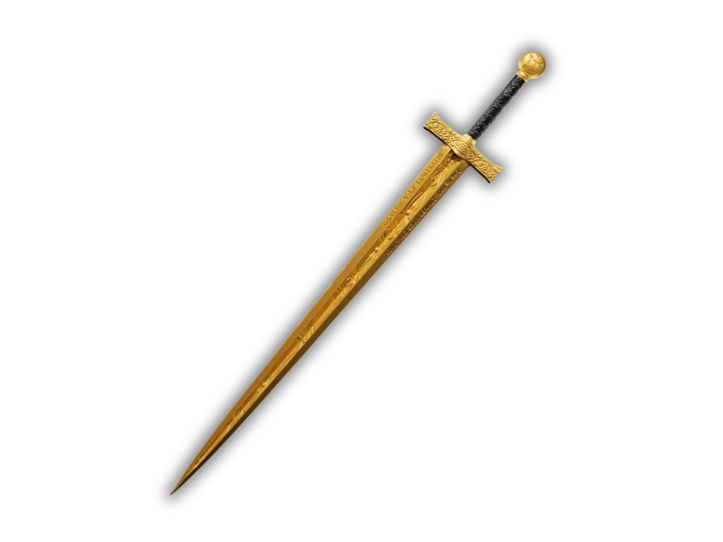 Stříbrná mince 2 oz Excalibur - Měč Krále Artuše 3D 220mm Zlacený King Arthur Gilded Sword