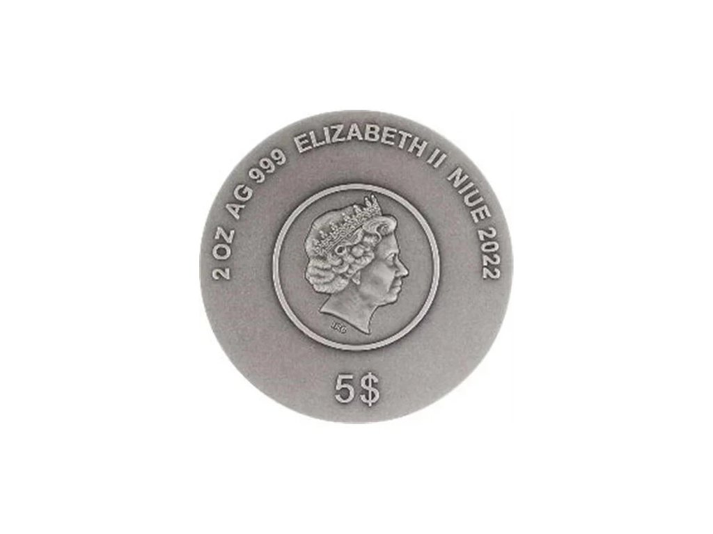 Mince je ražena z 2 trojských uncí ryzího stříbra .999 a vyniká působivým vysokým reliéfem o hloubce až 3 mm. Nominální hodnota 5 dolarů z ní činí zákonné platidlo ostrova Niue.