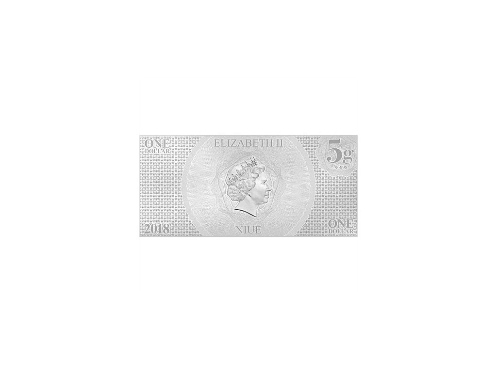 • Materiál: Ryzí stříbro (.999) • Hmotnost: 5 g • Rozměr: Formát bankovky • Povrchová úprava: Leštěný, barevný tisk • Líc: Podobizna královny Alžběty II. (Ian Rank-Broadley), nominální hodnota, rok vydání • Rub: Barevné vyobrazení Darth Vadera™ a logo filmu Star Wars™ • Země vydání: Niue • Nominální hodnota: 1 Niue dollar • Emise: Limitovaná, s individuálním číslem • Balení: Ochranný blistr s certifikátem pravosti Proč si ji pořídit?