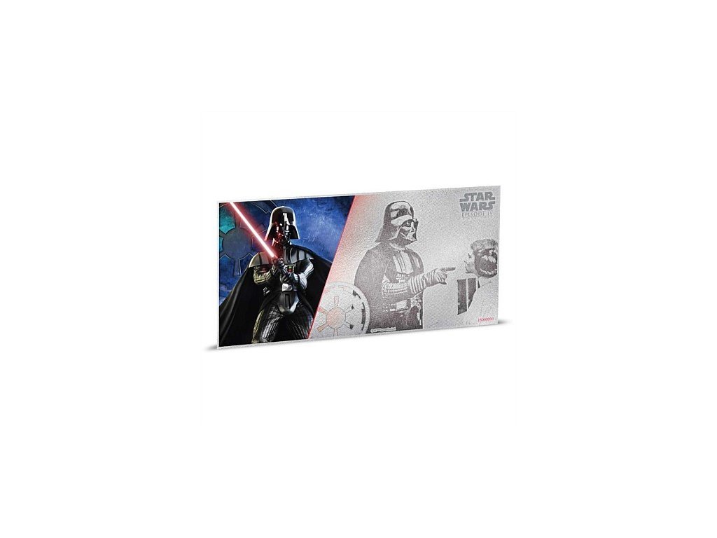 Stříbrná bankovka 5 g – Star Wars: Nová naděje – Darth Vader™Tato exkluzivní stříbrná bankovka z kolekce Star Wars: Nová naděje vzdává poctu ikonickému Sithskému™ lordovi – Darthu Vaderovi™. Vyrobena z ryzího stříbra (.999) o hmotnosti 5 gramů, přináší barevně zpracovaný design, který zachycuje temnotu, sílu a charisma této slavné postavy ze světa Star Wars. Na přední straně najdeme dva hrozivé portréty Dartha Vadera doplněné o oficiální logo filmu. Každá bankovka má své unikátní číslo ražby a je dodávána v ochranném blistru s certifikátem pravosti. Lícní stranu zdobí podobizna královny Alžběty II. od Iana Rank-Broadleyho. Bankovka je zákonným platidlem v zemi vydání Niue. Tato mince je posledním dílem z kolekce šesti postav ze ságy Star Wars: Nová naděje – mezi které patří Luke Skywalker™, Han Solo™, Chewbacca™, Obi-Wan Kenobi™, princezna Leia™ a droidi R2-D2™ & C-3PO™. Specifikace: