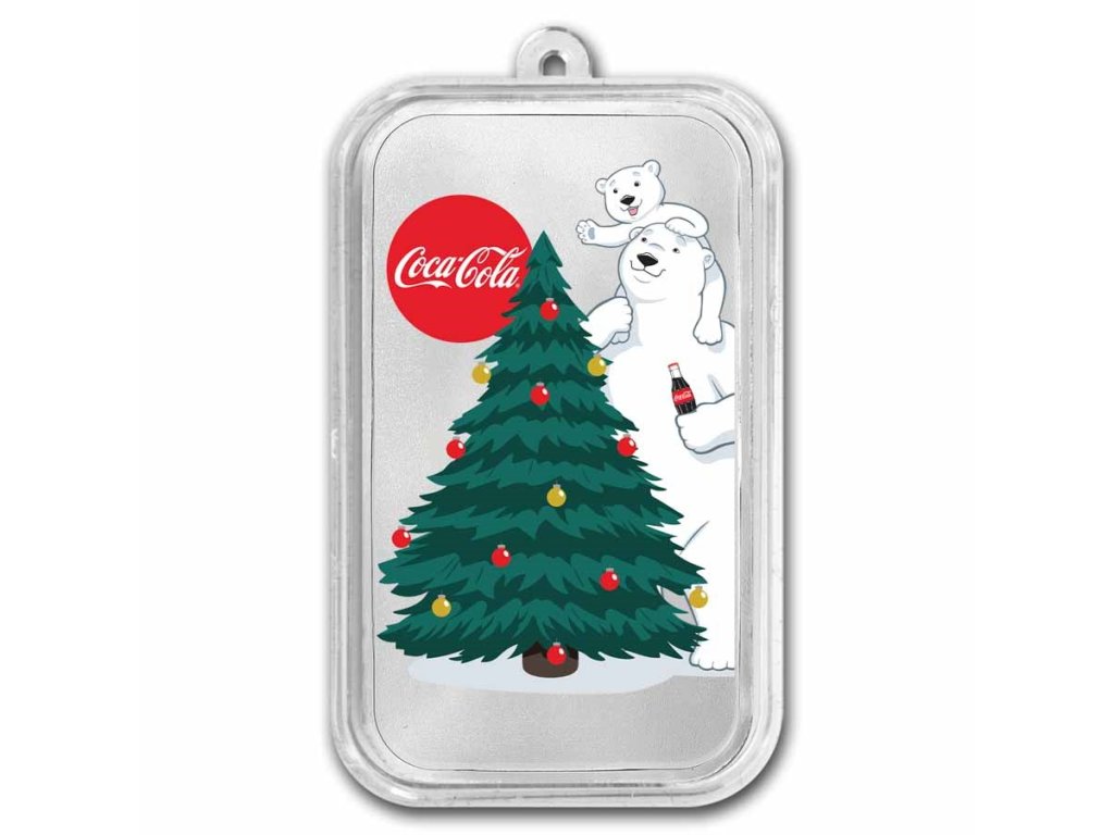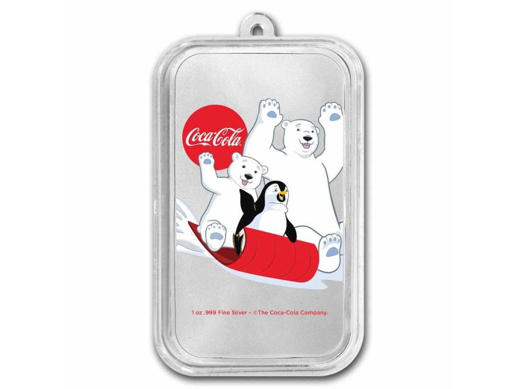 Sběratelský set k 30. výročí motivu Polar Bears ikonické značky . Obsahuje barevně upravený stříbrný slitek z 1 oz ryzího stříbra 999 a doplňkovou dekorativní ozdobu s motivem Coca-Cola.