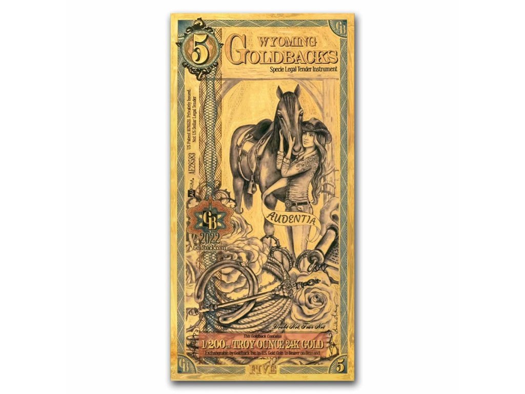 Wyoming Goldback představuje unikátní lokální dobrovolnou měnu obsahující 1/200 oz ryzího 24K zlata. Goldbacky jsou první měnou vyrobenou z fyzického zlata, která spojuje krásu, praktičnost a hodnotu.