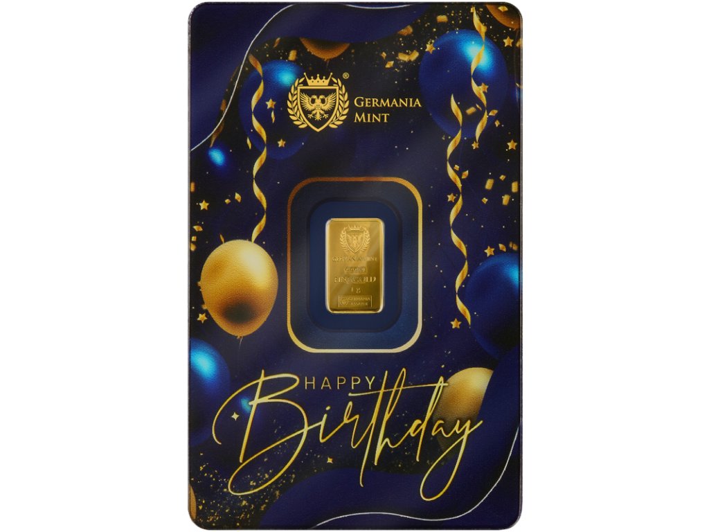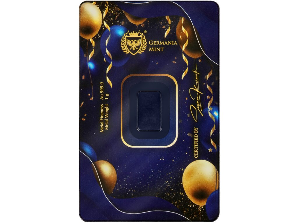 Happy Birthday – Zlatý slitek 1 g Germania Mint • Au 999.9 • Dárek k narozeninámJednogramový zlatý slitek v dárkovém balení Safepack, navržený speciálně k narozeninám. Originální dárek pro výjimečný den. Narozeniny nejsou jen další rok života – jsou to chvíle radosti, zamyšlení a blízkosti s těmi nejdůležitějšími. Jsou příležitostí projevit vděčnost za společné chvíle a pocítit, že jsme milováni a oceňováni. Darováním tohoto unikátního zlatého slitku dáváte víc než jen vzácný kov – darujete emoce, vzpomínky a trvalou hodnotu. Specifikace slitku: